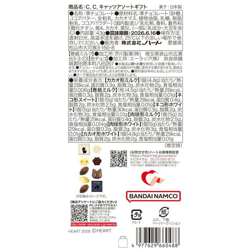 - ●原材料名:準チョコレート(砂糖、ココアバター、全粉乳、カカオマス、植物油脂、