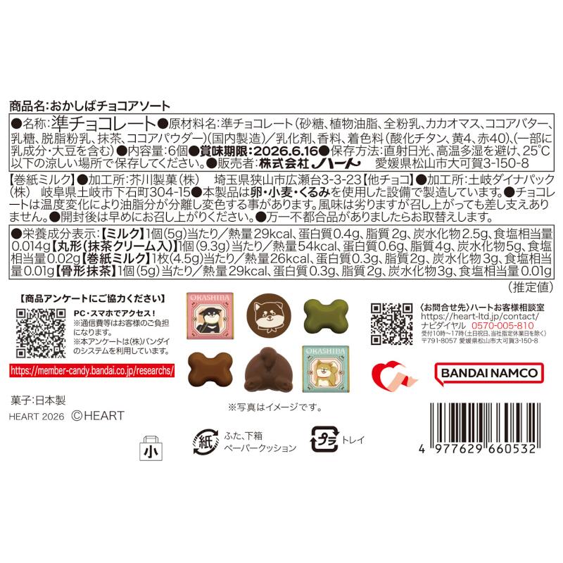 - ●原材料名:準チョコレート(砂糖、植物油脂、全粉乳、カカオマス、ココアバター、