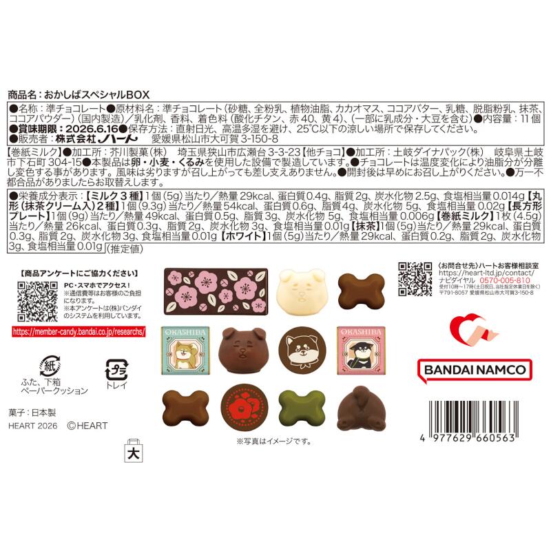 - ●原材料名:準チョコレート(砂糖、全粉乳、植物油脂、カカオマス、