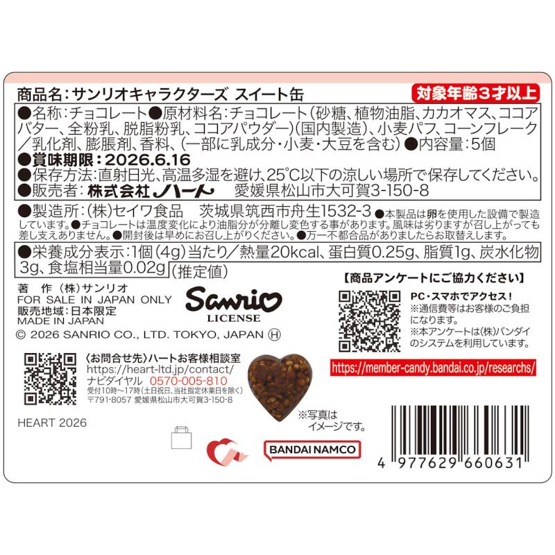 - ●原材料名:チョコレート(砂糖、植物油脂、カカオマス、