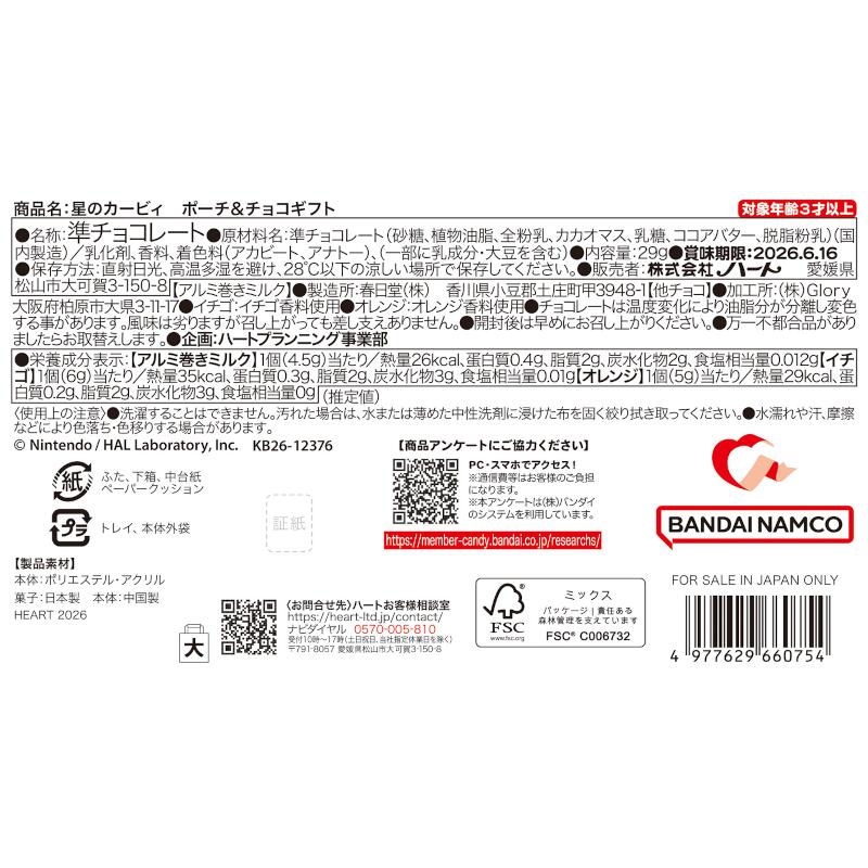 - ●原材料名:準チョコレート(砂糖、植物油脂、全粉乳、