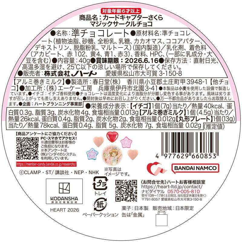 /乳化剤、着色料(アカビート、赤102、黄4、青1、赤3)、香料、HPC、(一部に乳成分・大豆を含む)