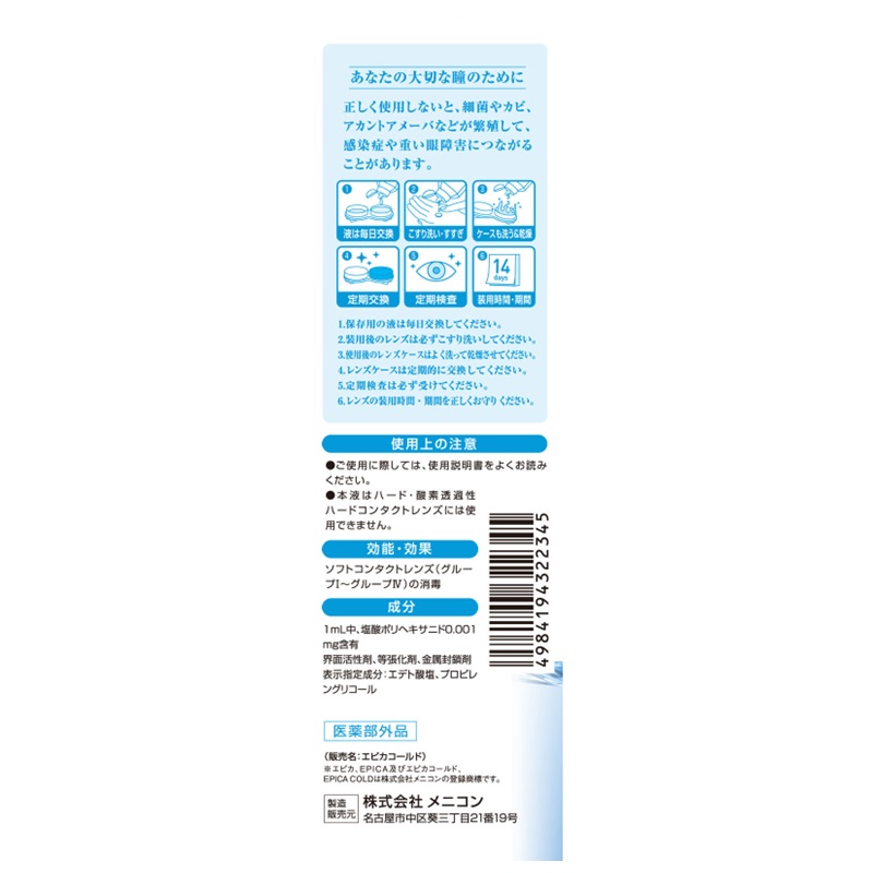 ソフトコンタクトレンズ用、洗浄・すすぎ・消毒・保存液。