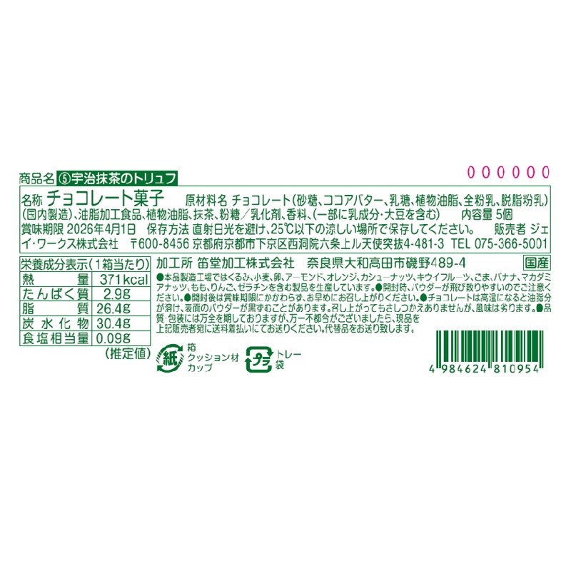 宇治抹茶の風味が堪能できるトリュフショコラ