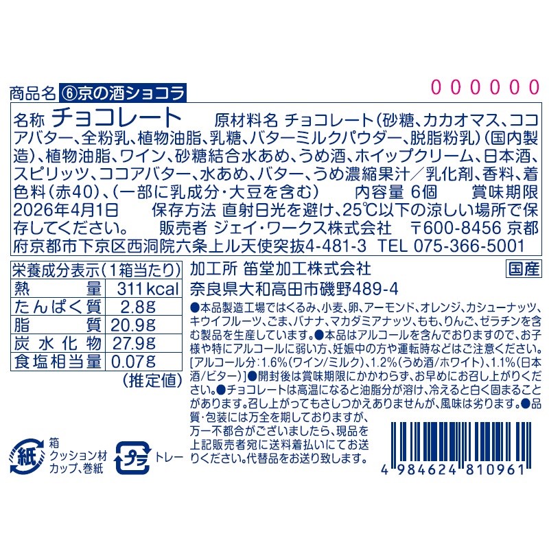 玉乃光酒造と丹波ワインのお酒を使用したショコラアソート