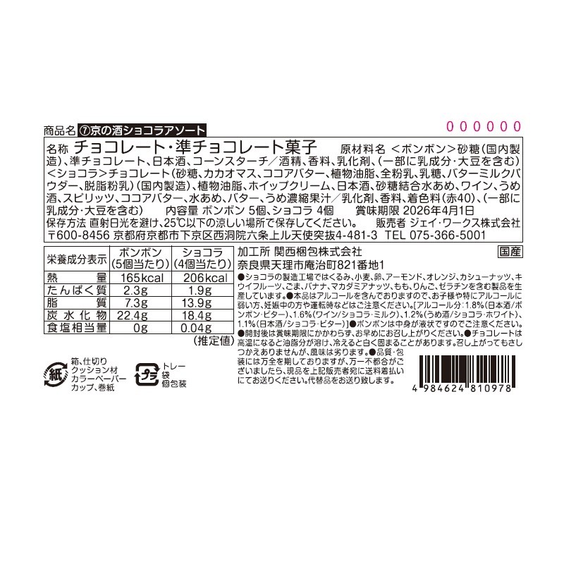 玉乃光酒造と丹波ワインのお酒を使用したショコラ、日本酒ボンボンのアソート