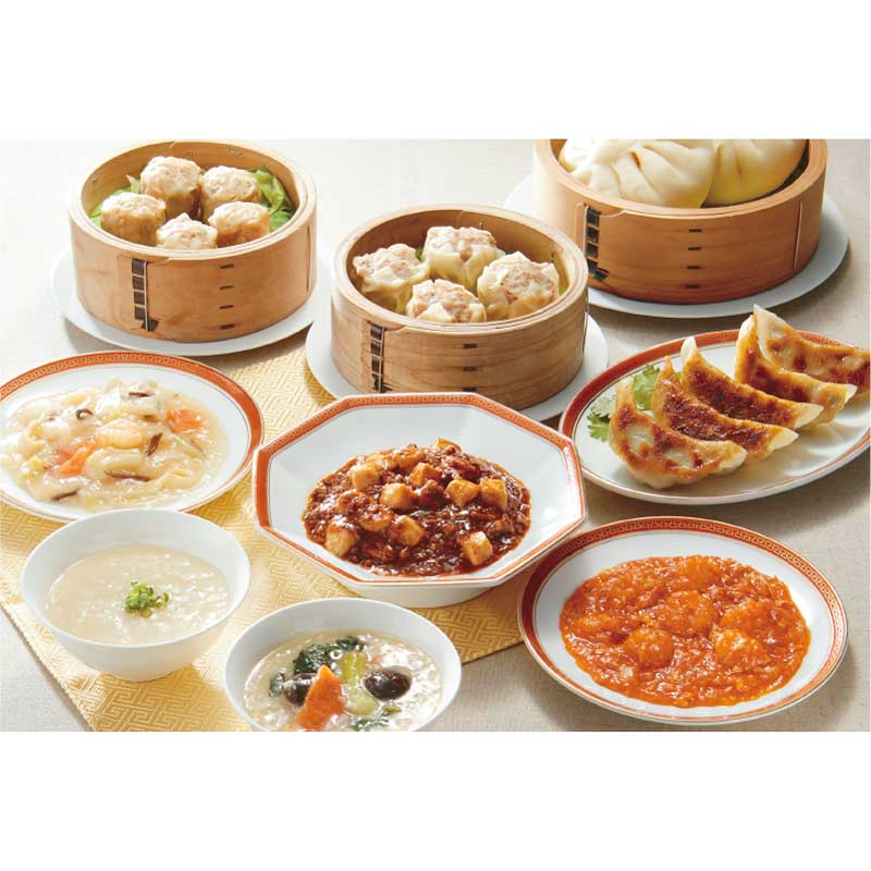 手包み肉まん2個入240g、陳麻婆豆腐丼120g、乾焼蝦仁丼120g、