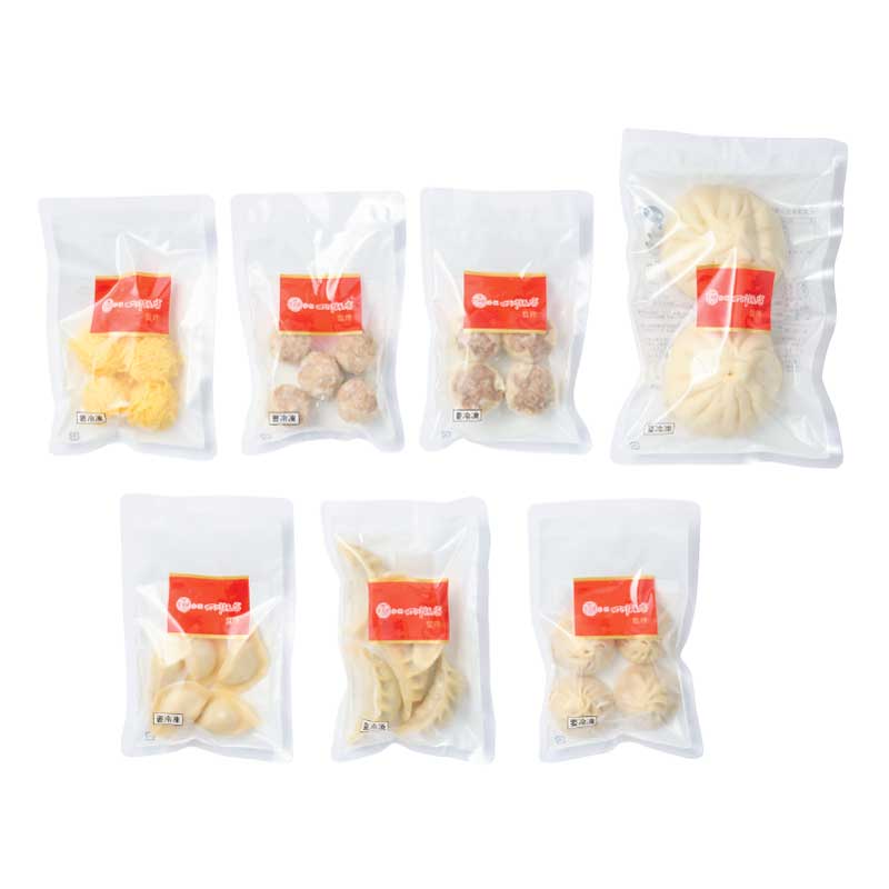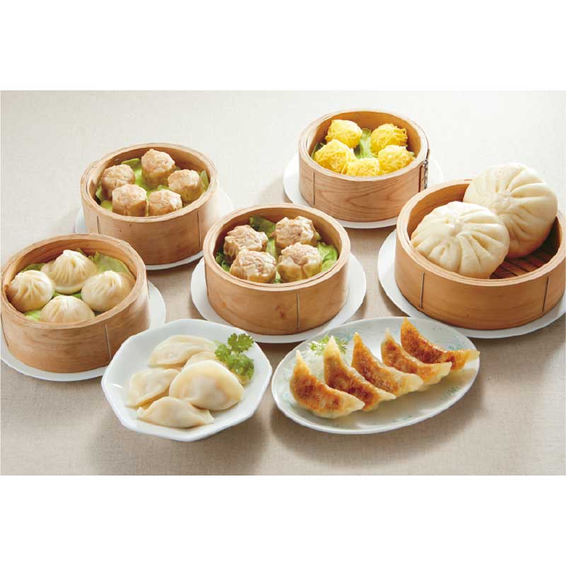 手包み肉まん2個入240g、錦糸焼売5個入125g、小籠包4個入140g、水餃子5個入×各1