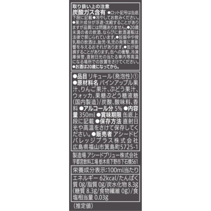 パイナップル・葡萄・リンゴをミックスした、甘すぎず、果実感がしっかり感じられる味わい