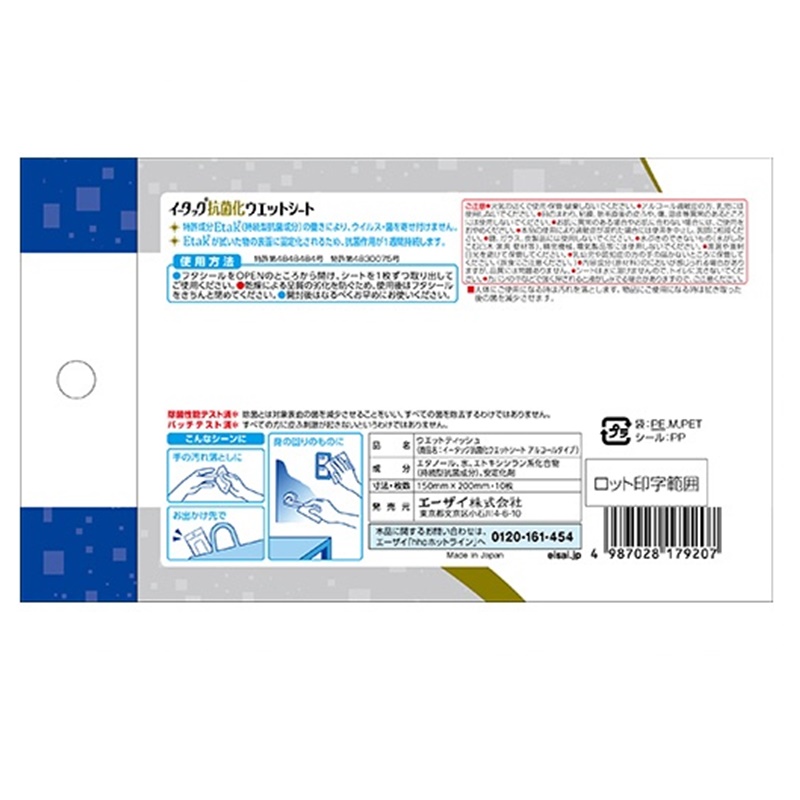 身の回りのものをサッとひと拭きで除菌・抗菌するウエットシートです。