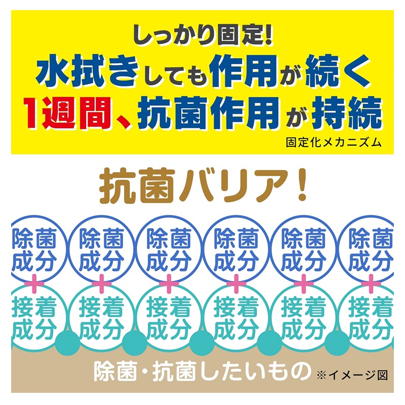 持続型抗菌成分Etakの働きによりウイルス・菌を寄せ付けず、抗菌作用が1週間持続します。