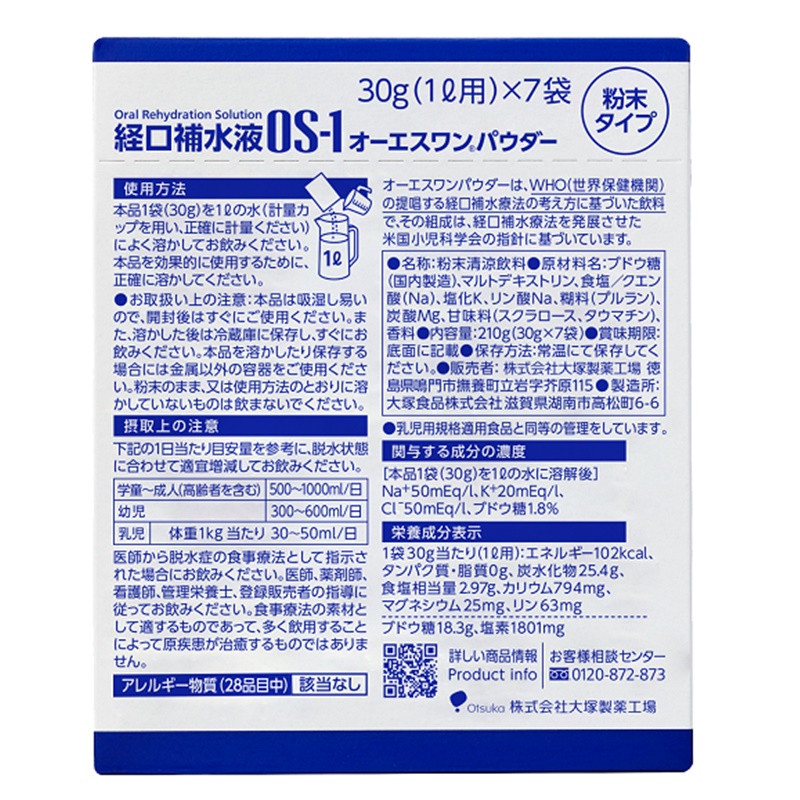 脱水症のための食事療法(経口補水療法)に用いる経口補水液用粉末です。