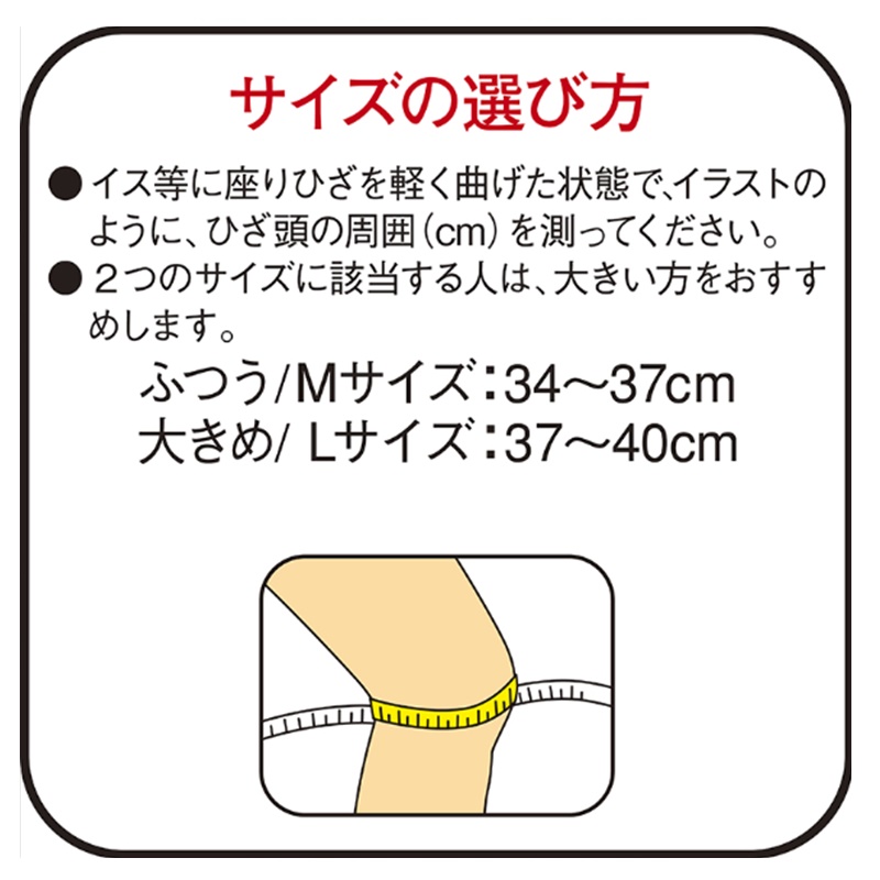 U字型のテーピング編みが、ひざのお皿を持ち上げるようにサポートし、左右のブレを抑え、ひざを伸ばす力を助けます。