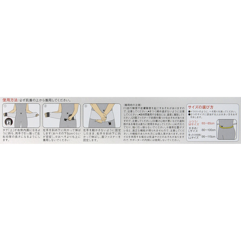 下腹部と腰部を挟み込むことで、適切な姿勢へサポートし、腰の負担を軽減。