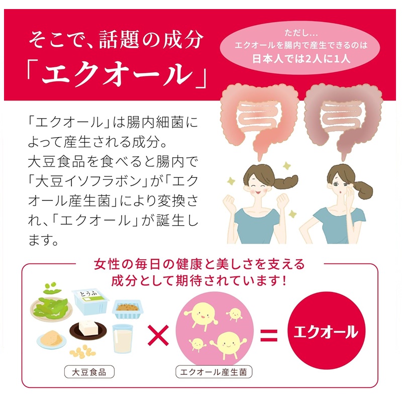 エクオールは女性の健やかさと健康的な美しさに役立つ成分として期待されています。