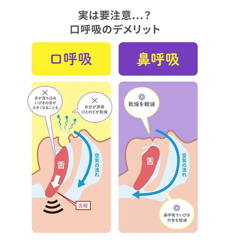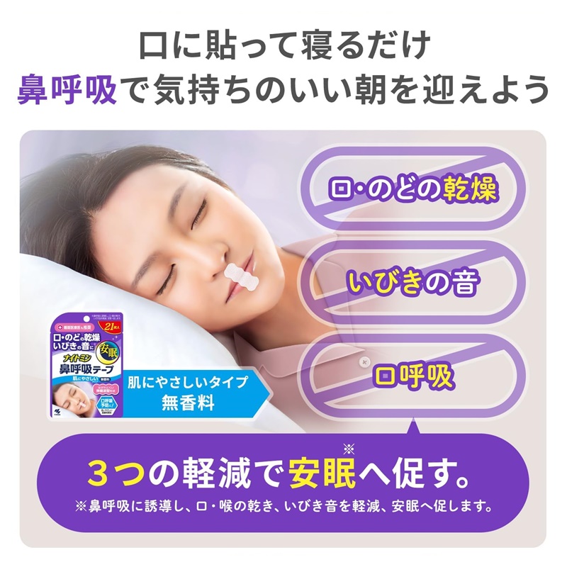 口に貼るだけで、ヒト本来の呼吸法(鼻呼吸)に整える鼻呼吸テープ。