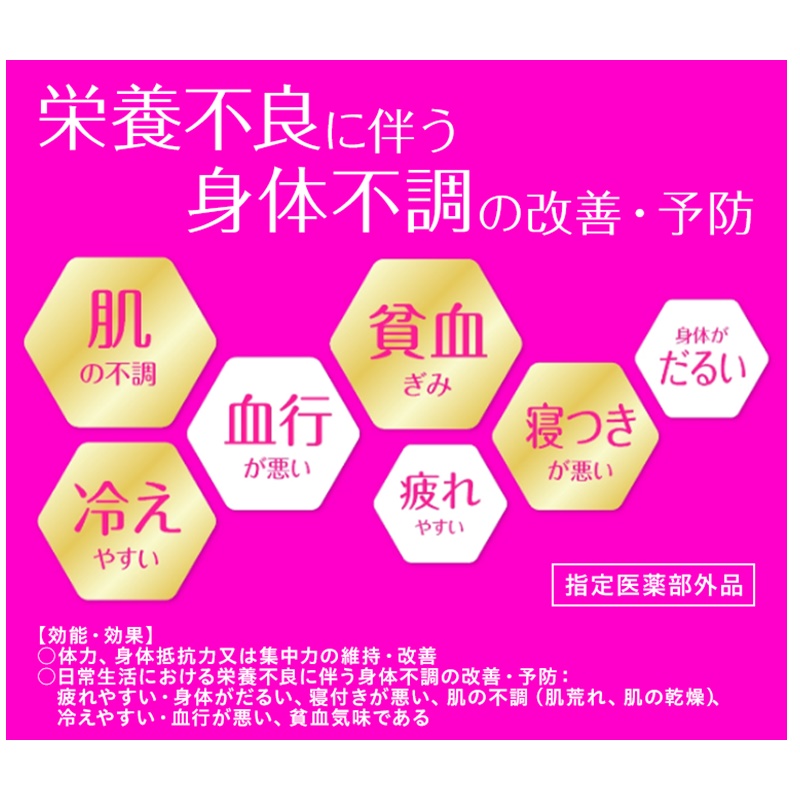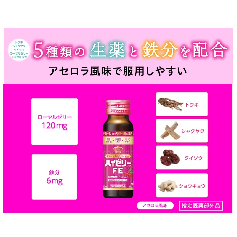 ローヤルゼリーのほか、4種類の生薬、鉄(クエン酸鉄アンモニウム)、