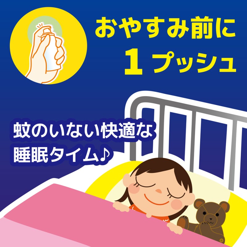 ●蚊の駆除効果が約12時間持続するワンプッシュタイプのスプレー。