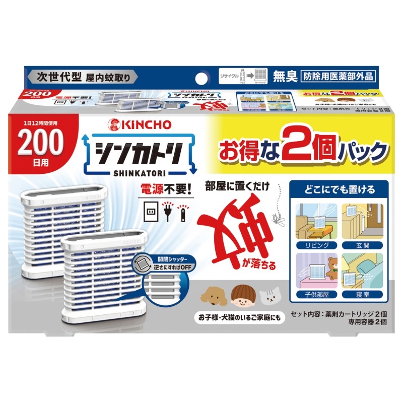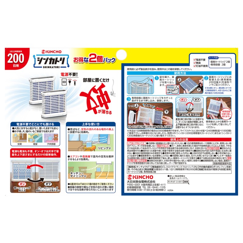 ●KINCHO独自の非加熱式薬剤拡散システムエアフローリリース技術…屋内の空気の流れを利用、お部屋に薬剤が拡散。置くだけ