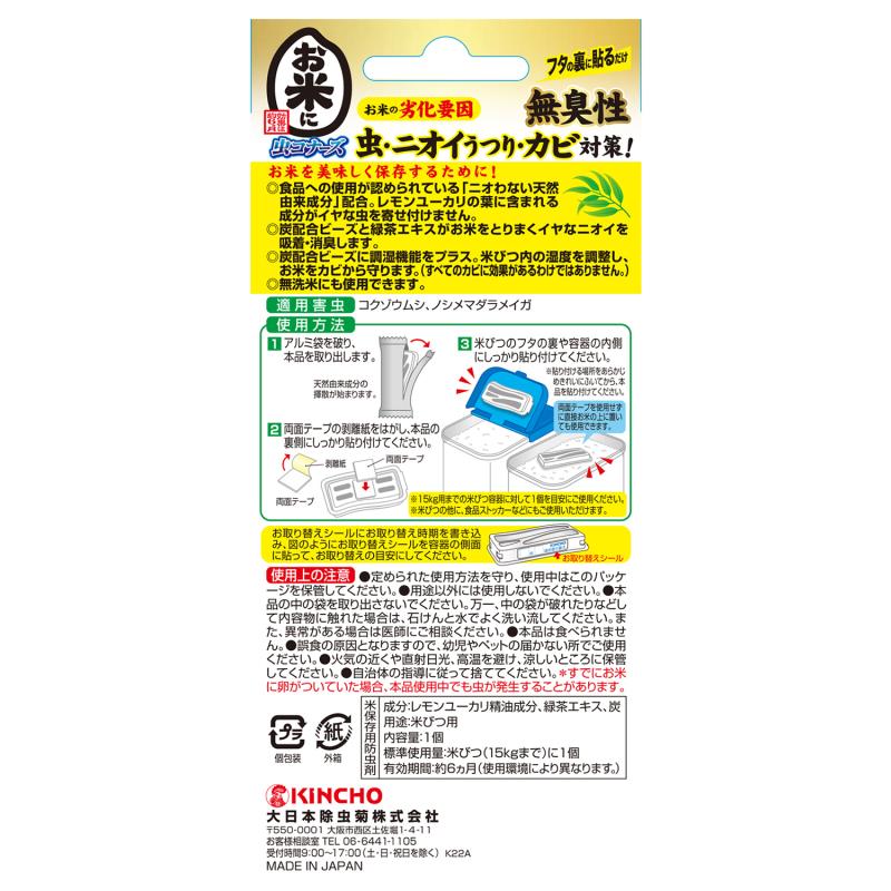 ●無洗米にも使用できます。効果は約6ヵ月。日本製。15kgまでの米びつに10kg対応。