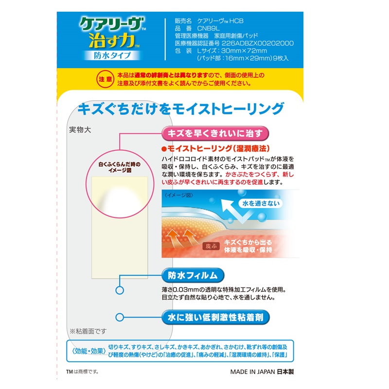 靴ずれ等の創傷及び軽度の熱傷(やけど)の「治癒の促進」、「痛みの軽減」、「湿潤環境の維持」、「保護」