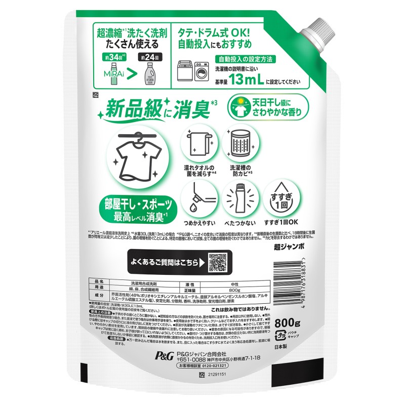 ※1…アリエール濃縮液体洗剤史上