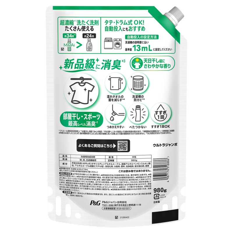 ●部屋干し・スポーツ最高レベル消臭(※1)