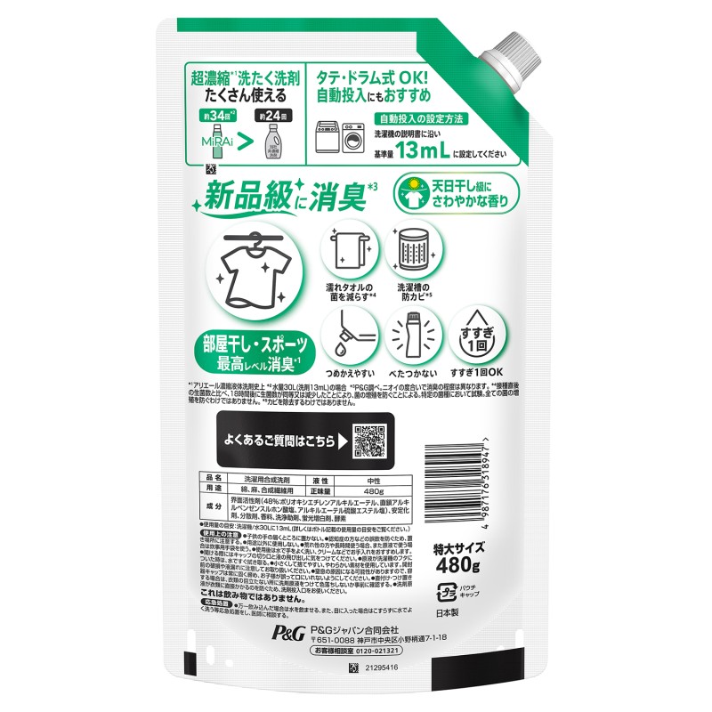●部屋干し・スポーツ最高レベル消臭(※1)