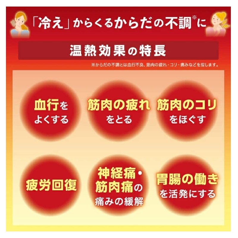 ジンジン刺激の温感が冷えや痛みに効く。