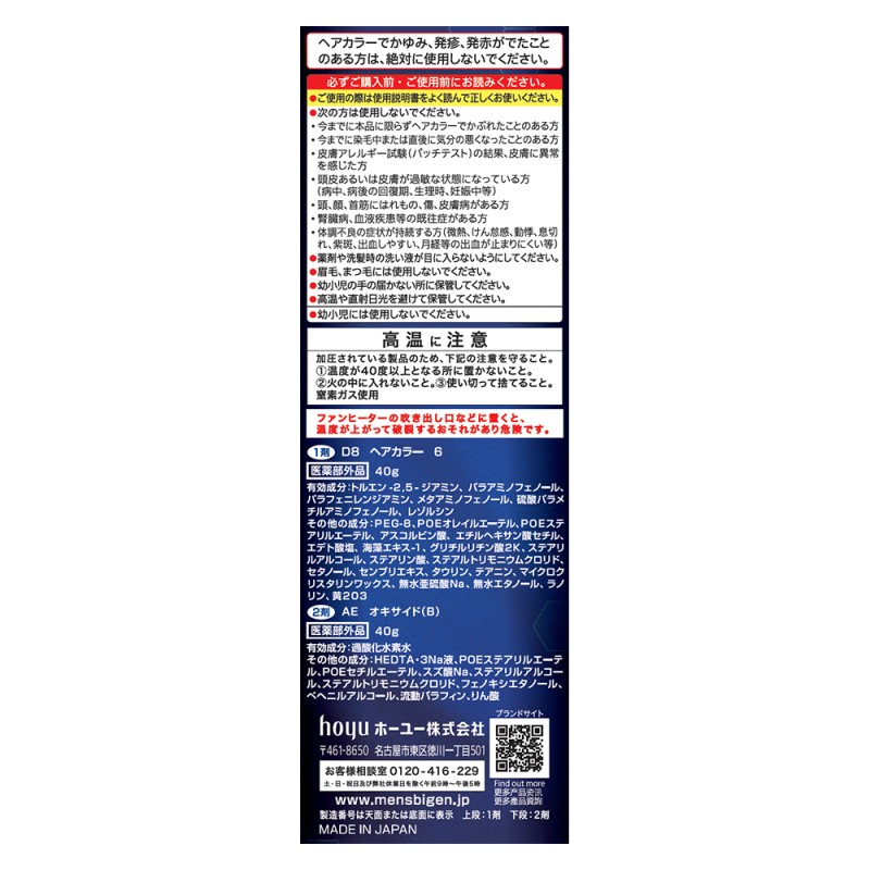 ●有効成分…トルエン-2,5-ジアミン、パラアミノフェノール、パラフェニレンジアミン、メタアミノフェノール、硫酸パラメチ