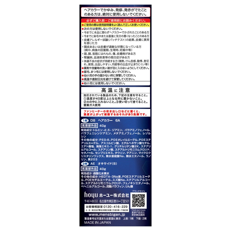 ●有効成分…トルエン-2,5-ジアミン、パラアミノフェノール、パラフェニレンジアミン、メタアミノフェノール、レゾルシン