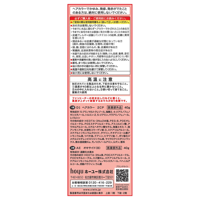 ●有効成分…5-アミノオルトクレゾール、塩酸2,4-ジアミノフェノキシエタノール、トルエン-2,5-ジアミン、パラアミノ