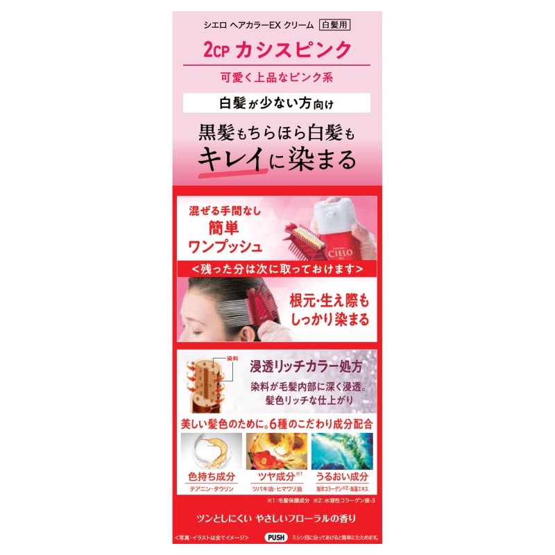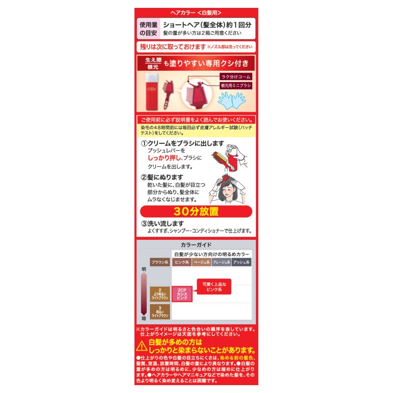 ●まぜる手間なし、簡単ワンプッシュ。・自然なツヤを感じる美しい染め上がり。