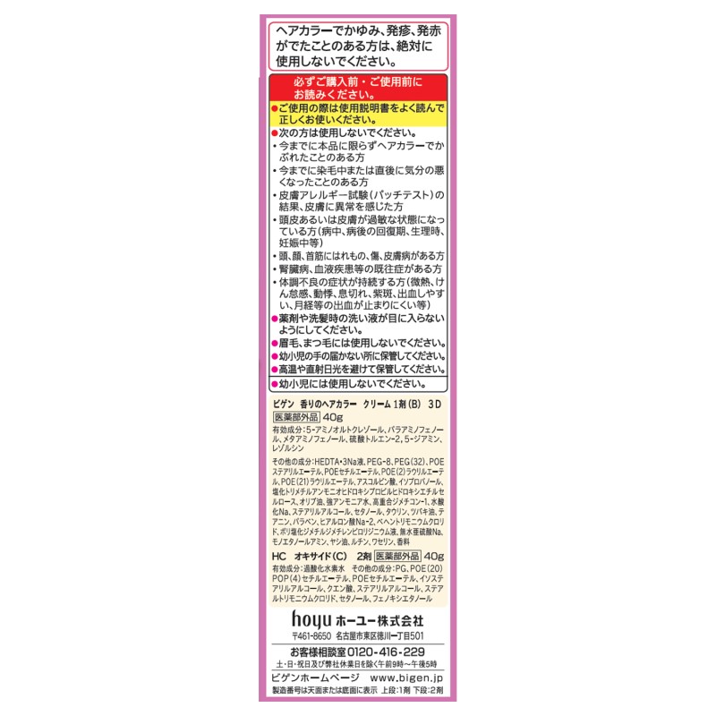 ●有効成分…5-アミノオルトクレゾール、パラアミノフェノール、メタアミノフェノール、硫酸トルエン-2,5-ジアミン、レゾ