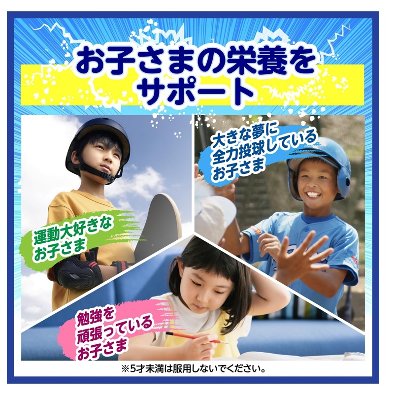各種ビタミン、カルシウム、タウリンなどお子さまの発育に必要な栄養成分を配合したミニドリンク剤です。