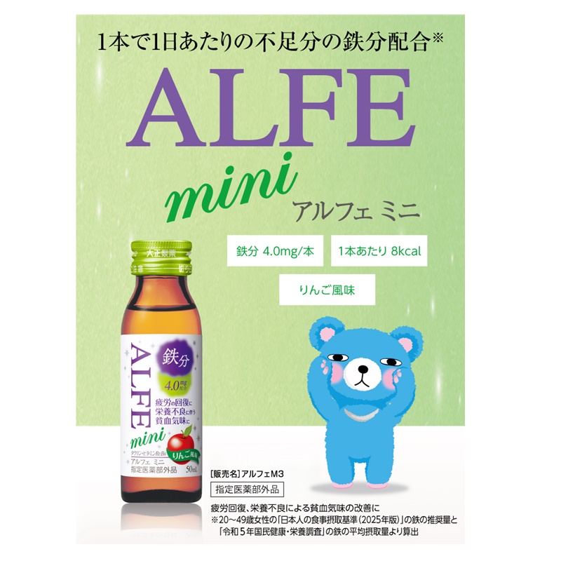 1本に1日あたりの不足分の鉄分4.0mgを配合しています。