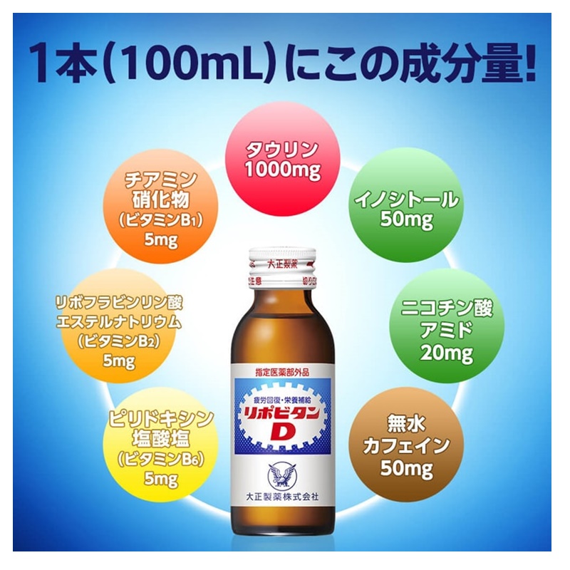 1本中にタウリン1000mgとイノシトール、ビタミンB群などを配合したドリンク剤です。
