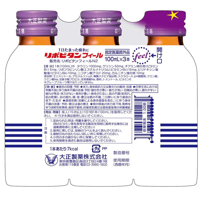 疲労回復の鍵となるタウリンとビタミンB1・B2・B6を配合した、カシス&グレープフルーツ風味のドリンク剤です。