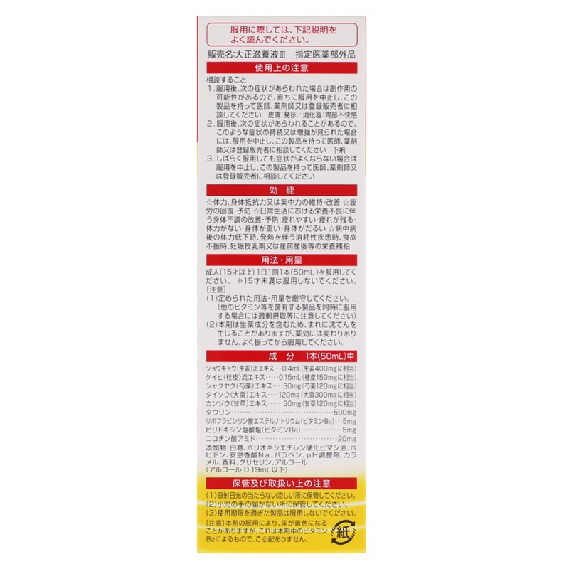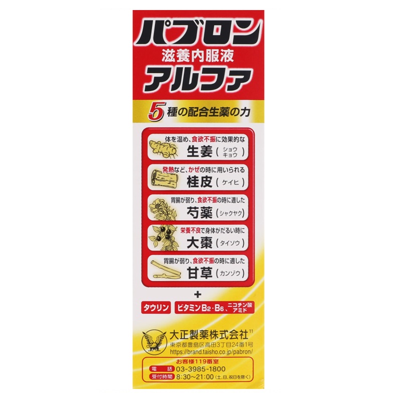 からだを温める生姜など合計5種の生薬に3種のビタミンとタウリンを配合しています。