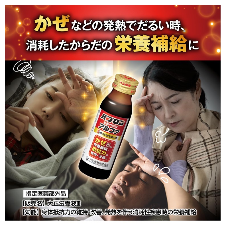 かぜなどの発熱でだるい時の栄養補給や、身体抵抗力の維持・改善に効果を発揮するミニドリンク剤です。