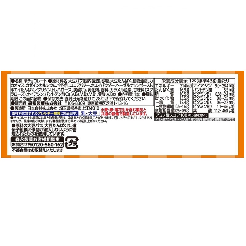 おいしく手軽におやつ感覚でタンパク質を補給できる、バータイプの栄養補助食品です。