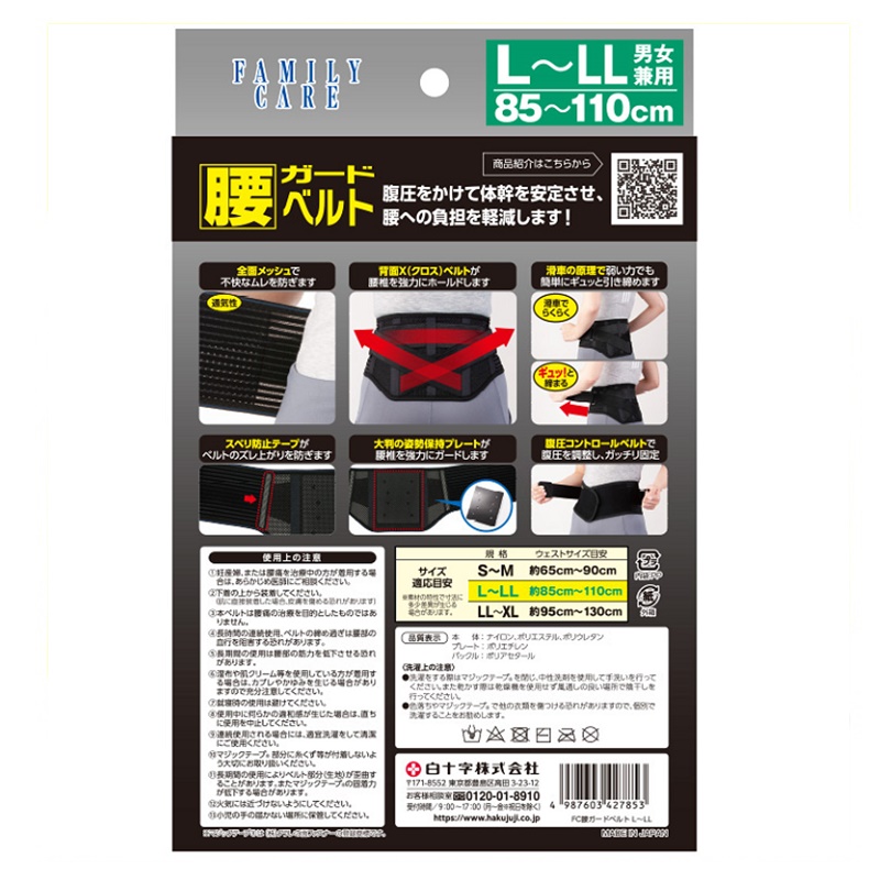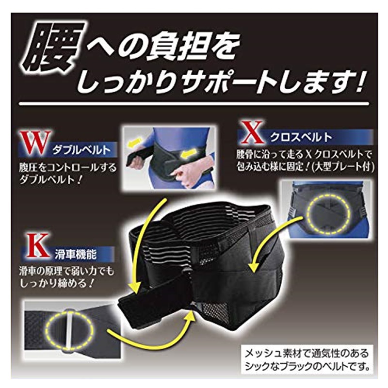 背面X(クロス)ベルトが腰椎を強力にホールドします。