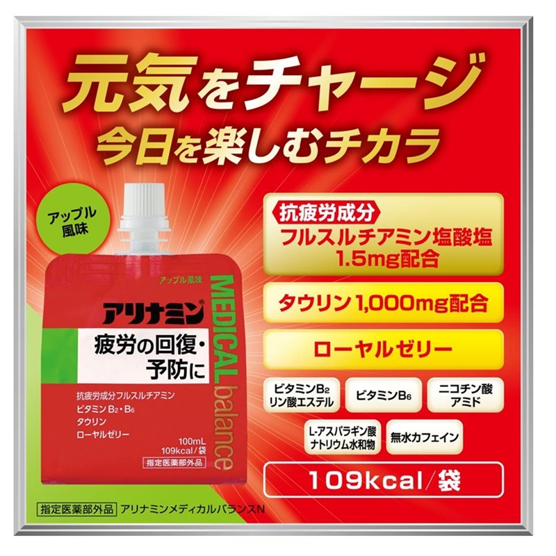 食欲不振時の栄養補給や、疲労の回復・予防に効くアリナミンのゼリー状飲料。