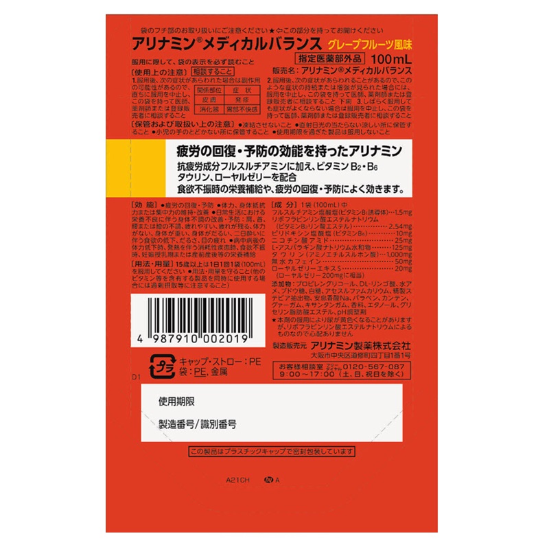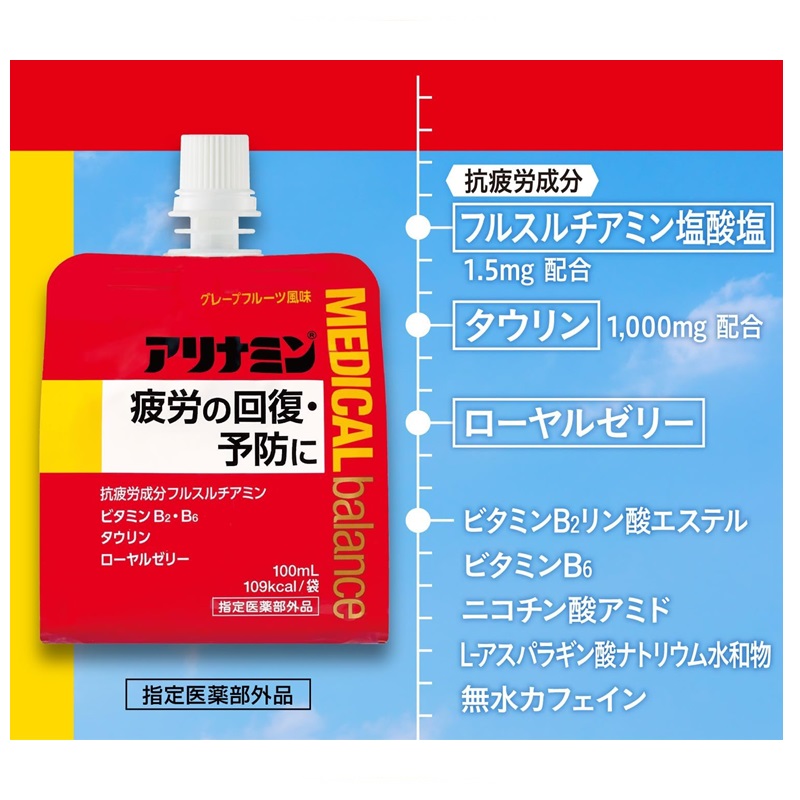 食欲不振時の栄養補給や、疲労の回復・予防に効くアリナミンのゼリー状飲料。