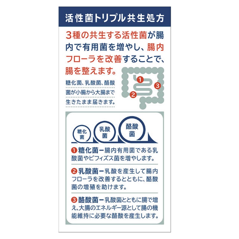 乳酸菌だけでなく、酪酸菌、糖化菌を加えた3種の活性菌を配合しています。