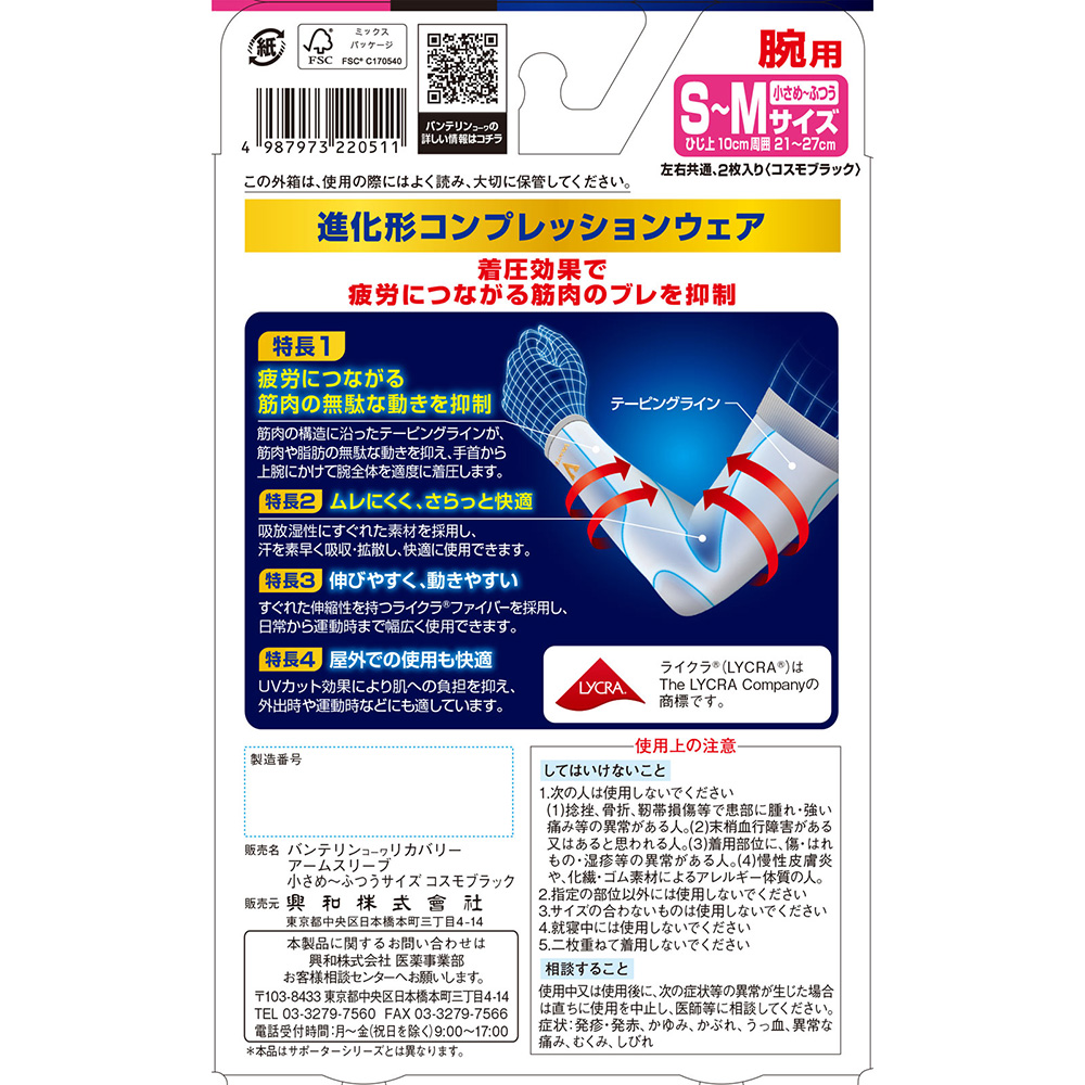 筋肉の構造に沿ったテーピングラインが、筋肉や脂肪の無駄な動きを抑え、手首から上腕にかけて腕全体を適度に着圧します。