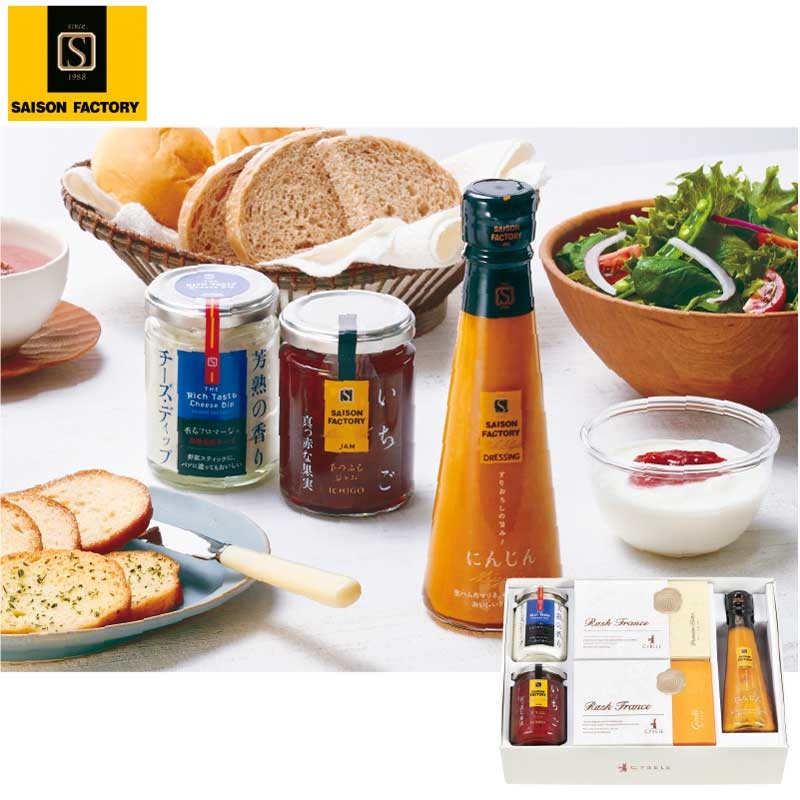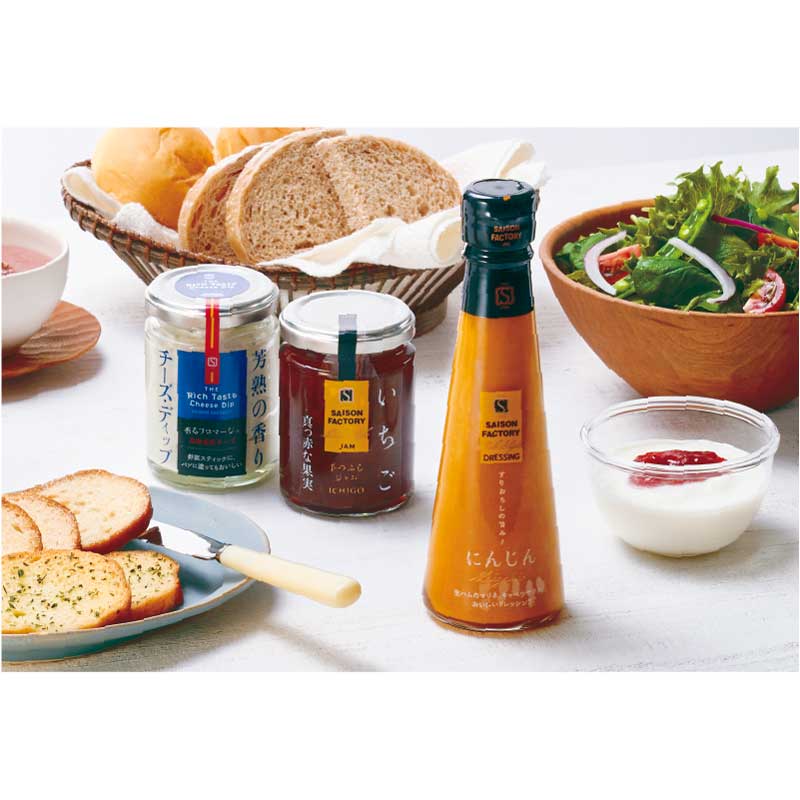 リッチスタイルジャムいちご155g×1、チーズ・ディップ120g×1、リッチスタイルドレッシングにんじん160ml×1