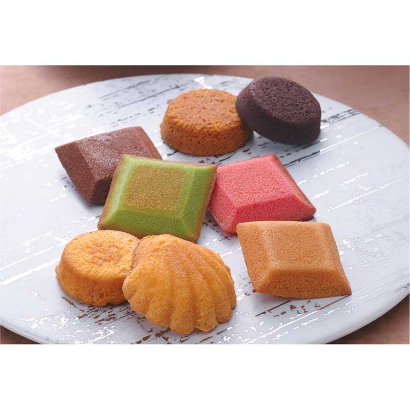 マドレーヌ×3、チョコオレンジケーキ×2、メープルアーモンドケーキ×3、いちごバターケーキ×3、